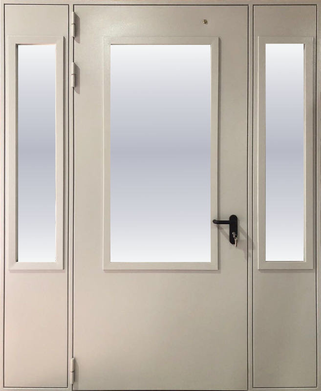В ассортименте производителя появились однопольные нестандартные противопожарные двери. Их особенность заключается в увеличенной ширине за счёт боковых остеклённых вставок. В основном полотне присутствует прозрачный элемент. Таким образом, общая площадь остекления конструкции более 25%.